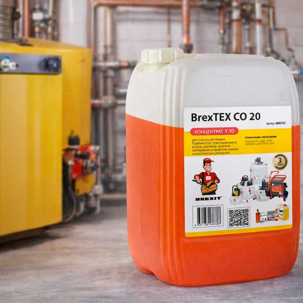 BrexTEX CO применяется для профилактической очистки, восстановления циркуляции теплоносителя и подготовки оборудования к новому сезону эксплуатации.