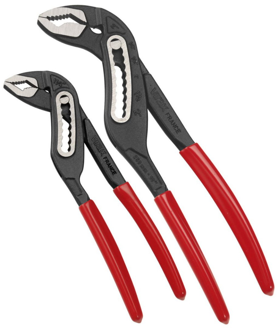 Быстропереставные клещи Virax с особо широким раскрытием щек для захвата труб макс. диаметром до 56 мм, длина 250 мм, с эргономичными противоскользящими рукоятками.