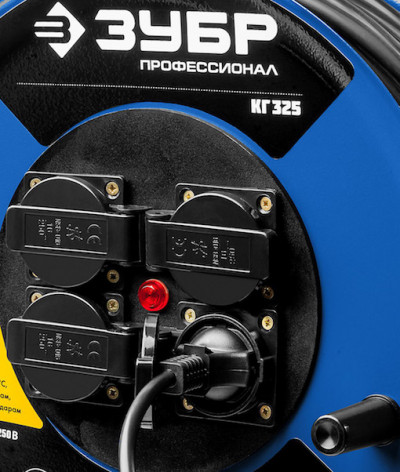 Удлинитель на стальной катушке Зубр, заземление, 4000Вт, 4 гнезда, 50м